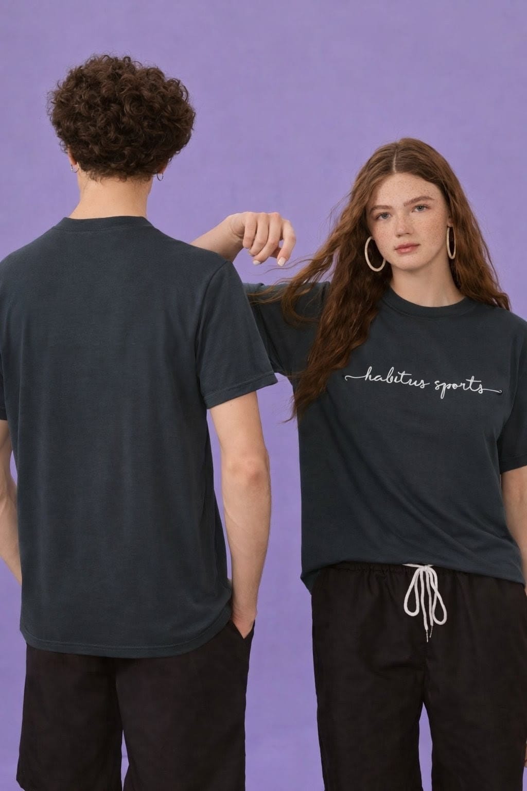 Breathable bi-stretch tee with sweat-wicking fabric and Habitus silver print for mid to high intensity.
