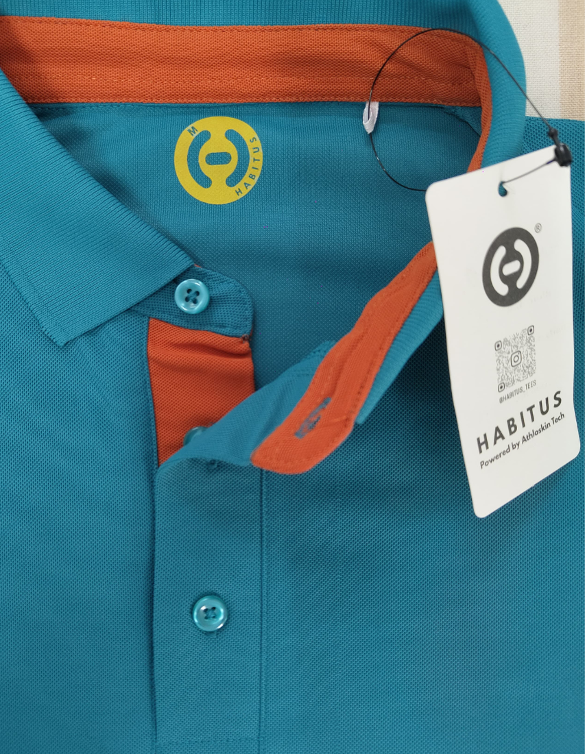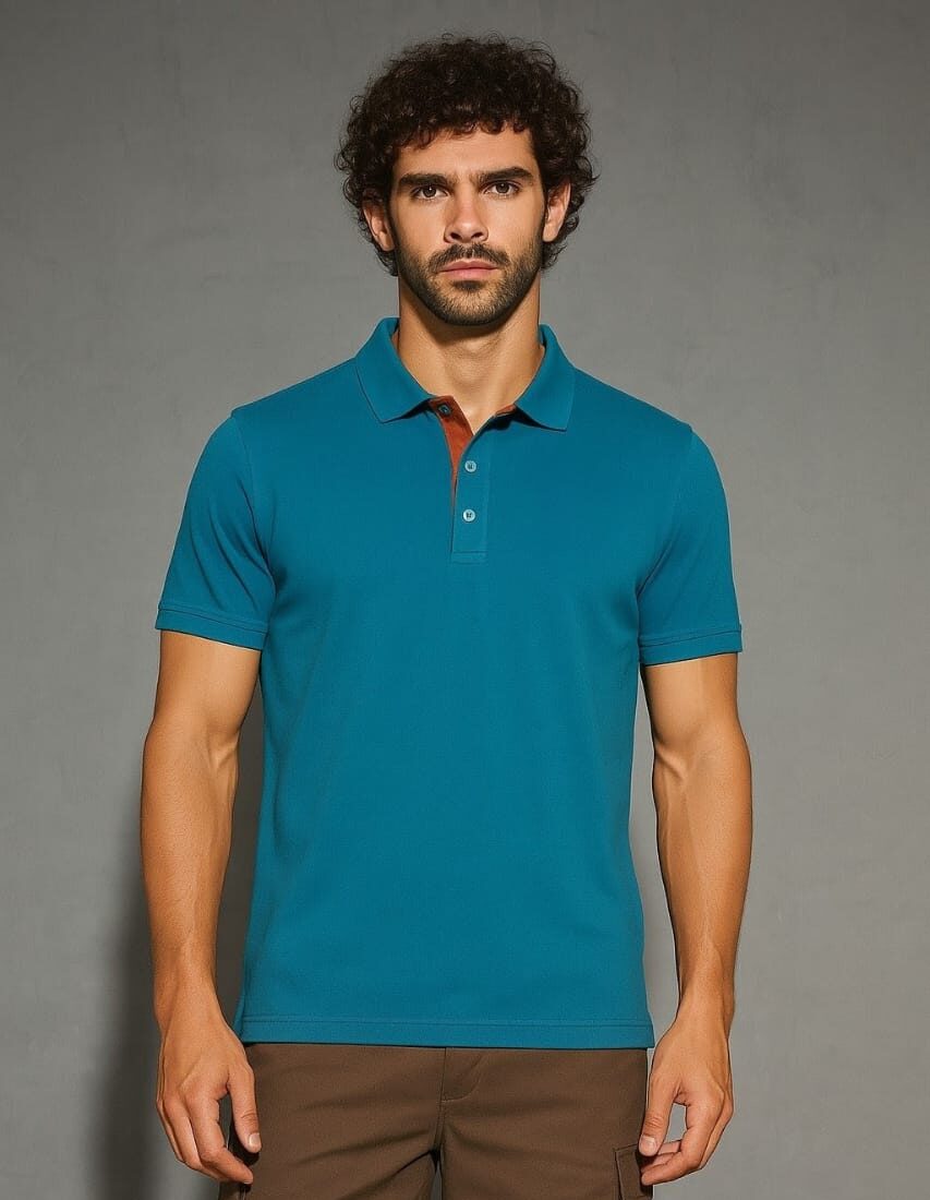Men’s Harbour Blue Polo T-Shirt with Burnt Orange Placket