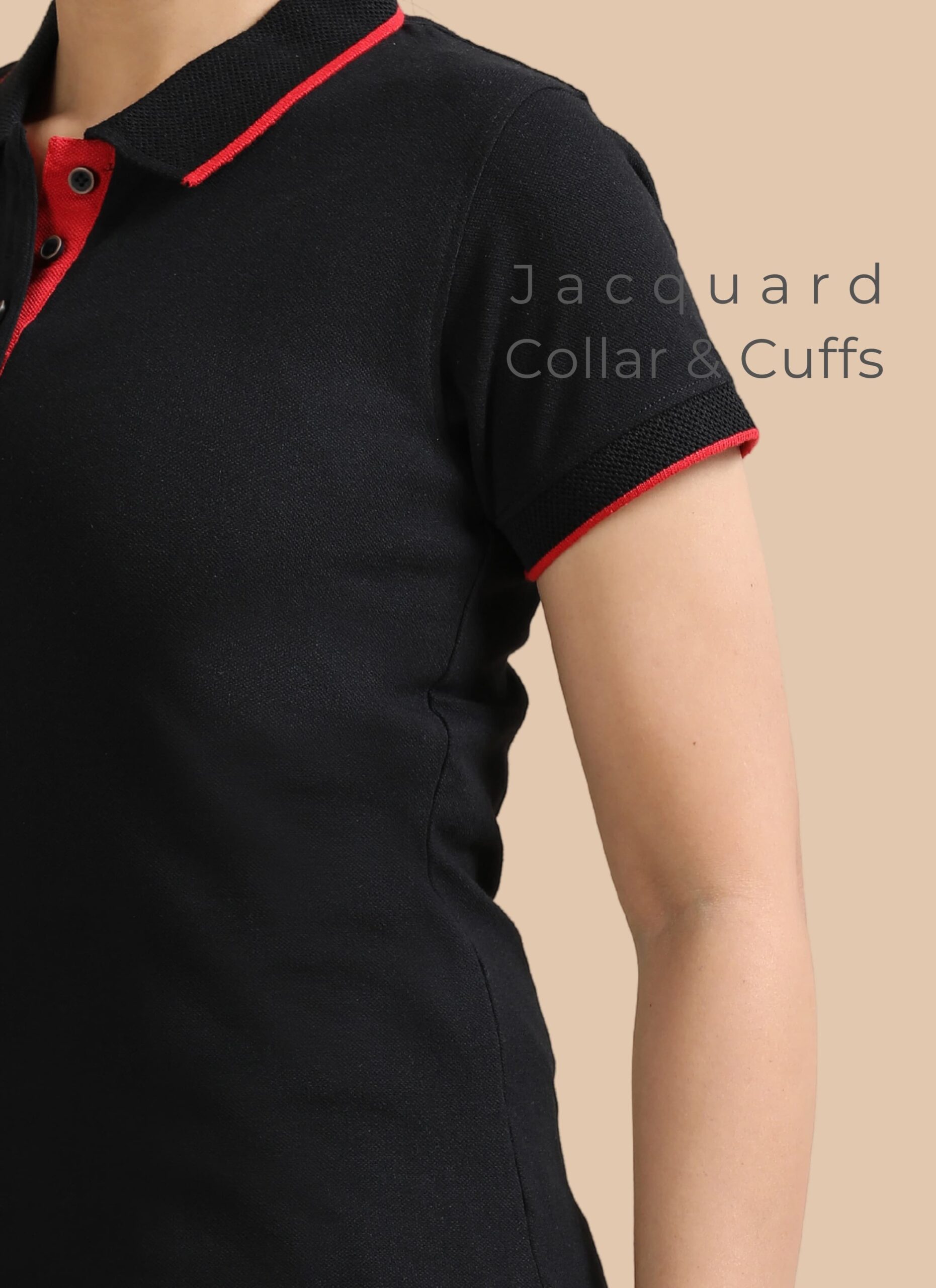 Women’s Black Polo T-Shirt – Red Tipped Collar