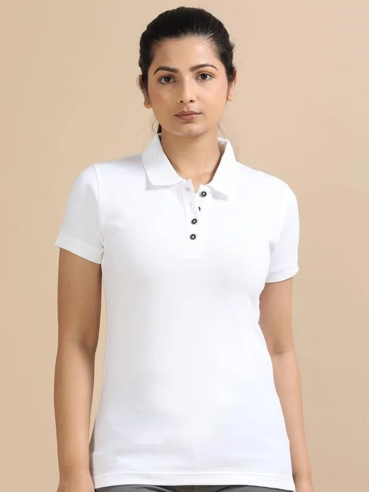 Women’s White Cotton Polo T-Shirt – Classic Fit